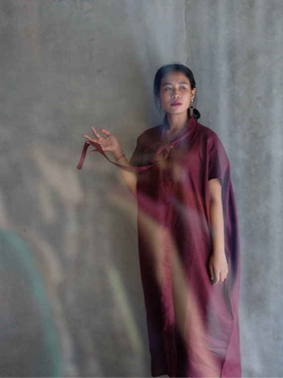 Ribbon Dress in Burgundy
