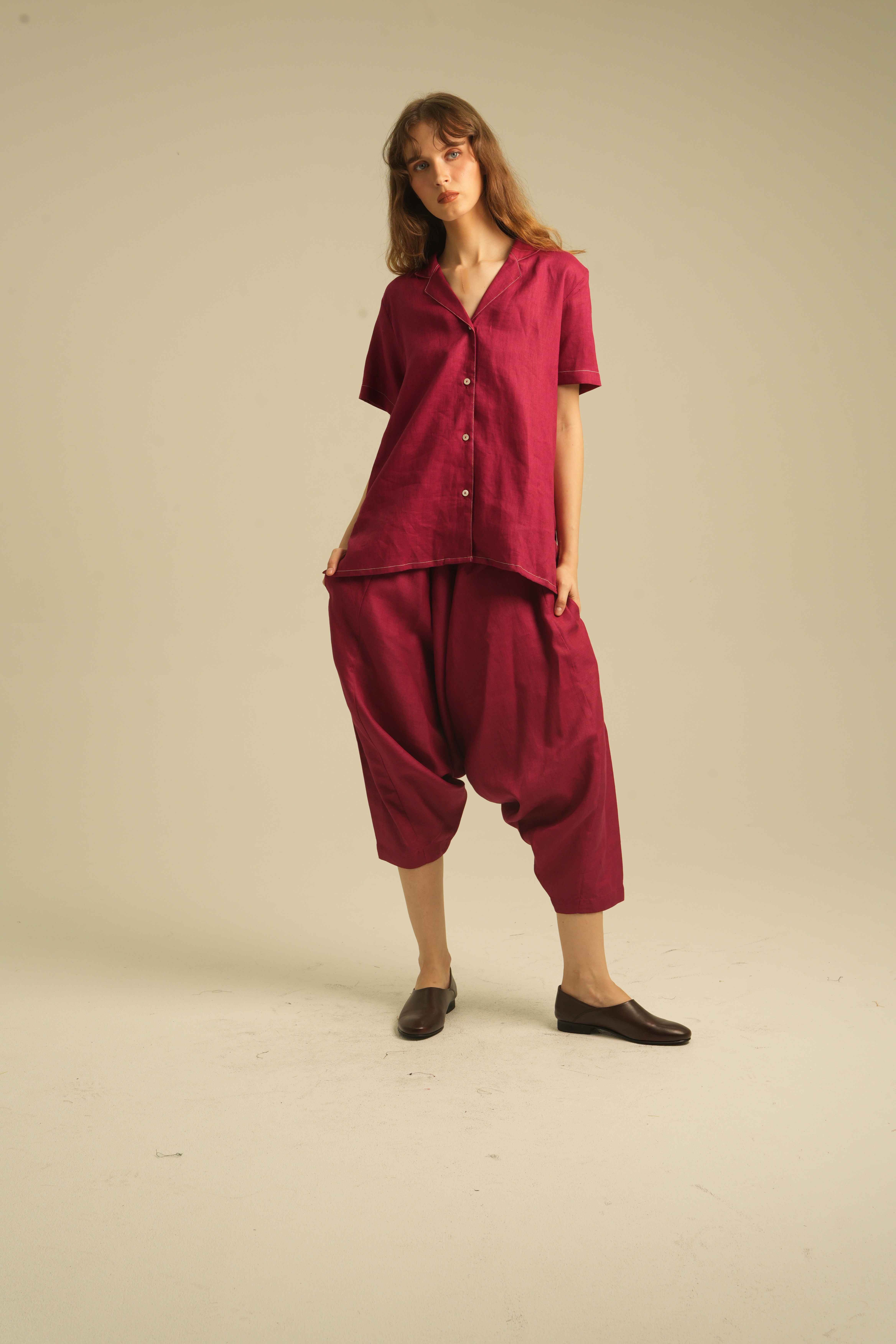 Waist Elastic up to 102 Cm Length 86 Cm Hip 110 Cm Rise 65 Cm Weight 500 gr Made from 100% premium linen Actual color may differ from the screen due to lighting and depending on the device you are using.
