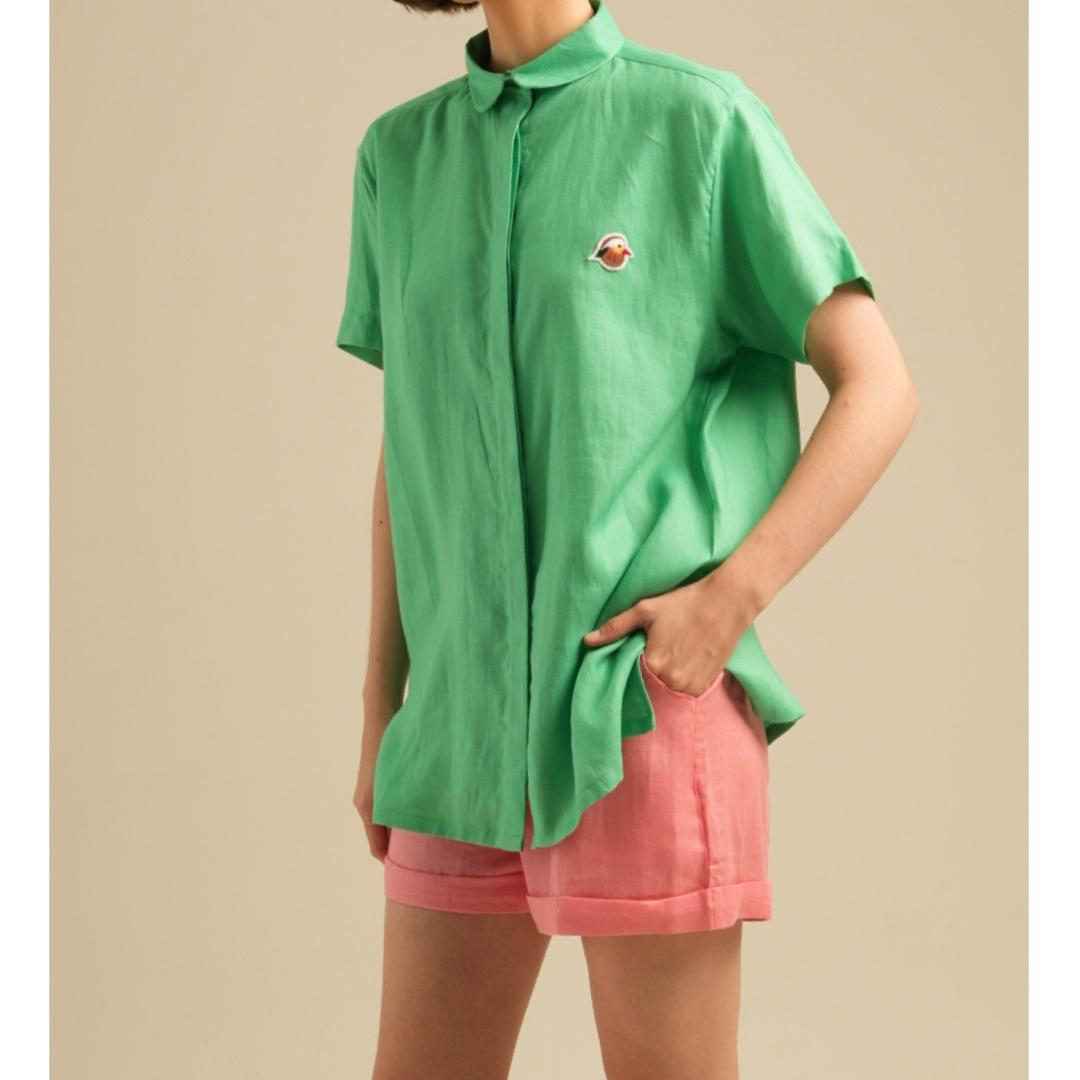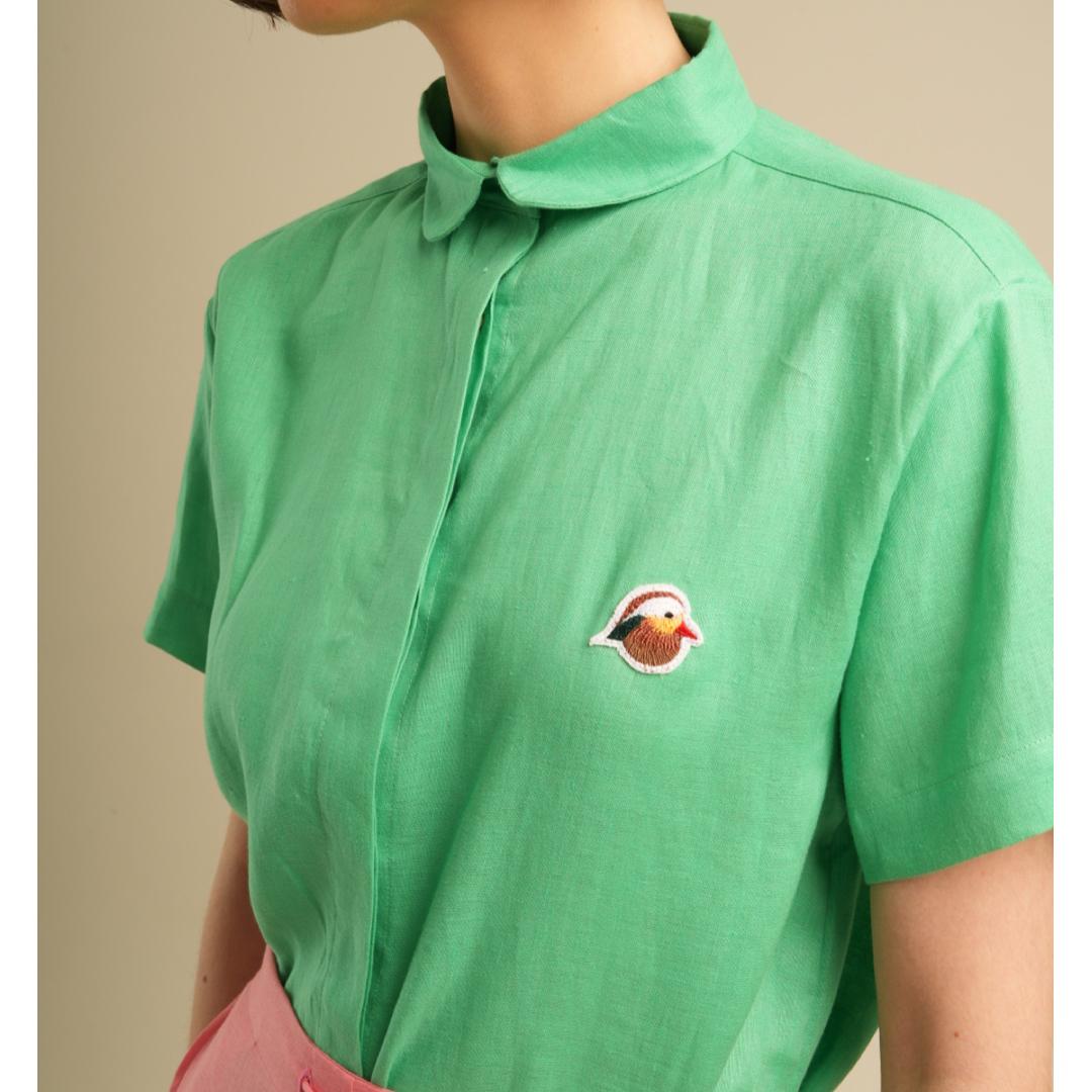 Sleek Looking Shirt with Mandarin Duck Embroidery. Made of 100% Premium Linen