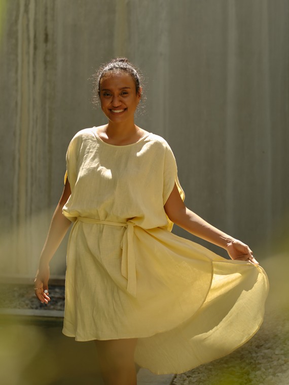 A piece of dress with adjustable strap on waist and depends on body height/size Side length : 67 cm Front length : 85 cm Back length : 113 cm Arm hole up to 42 cm Bust up to 170 cm Fabric : Premium Irish Linen Actual color may differ from the screen due to lighting and depending on the device you are using.