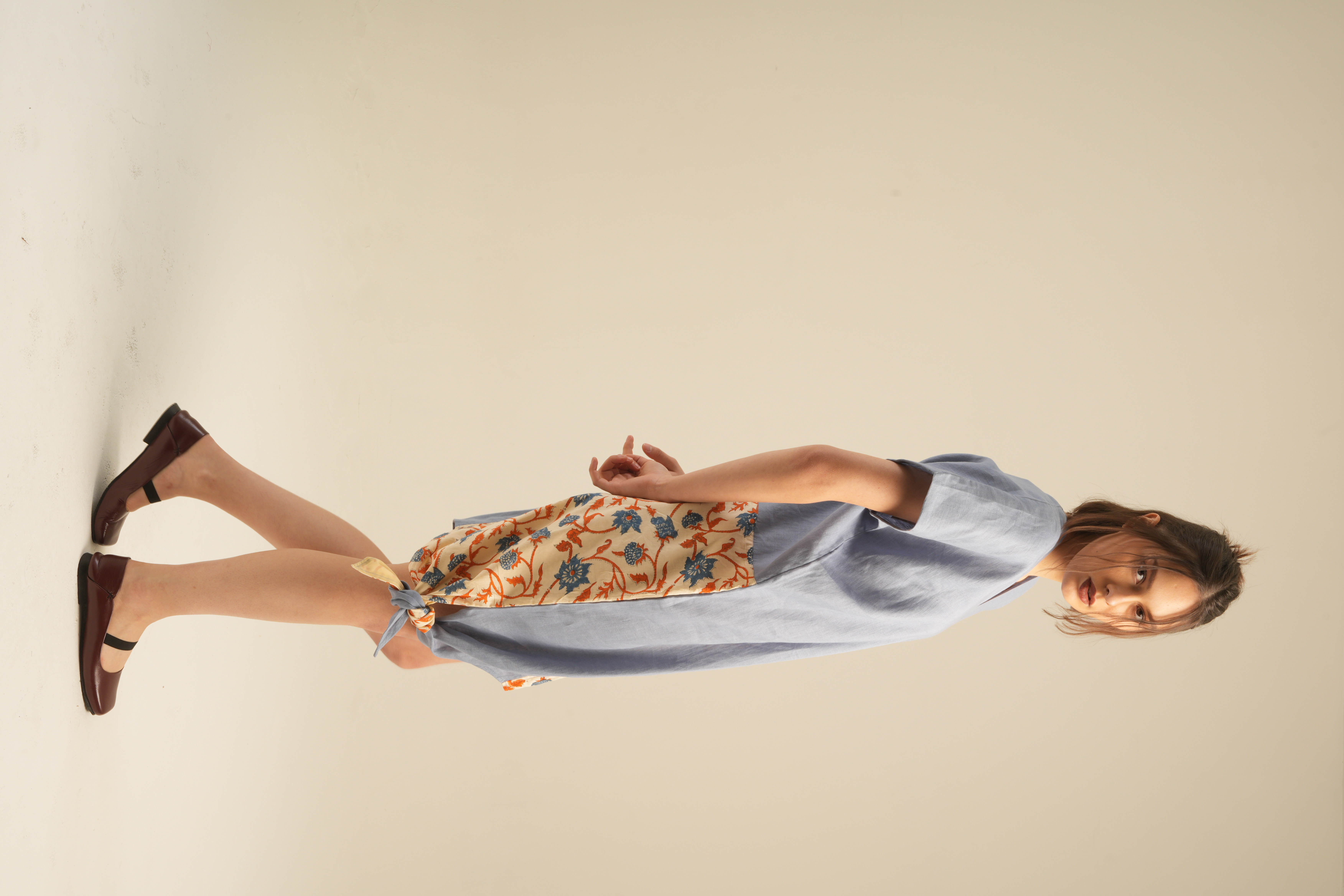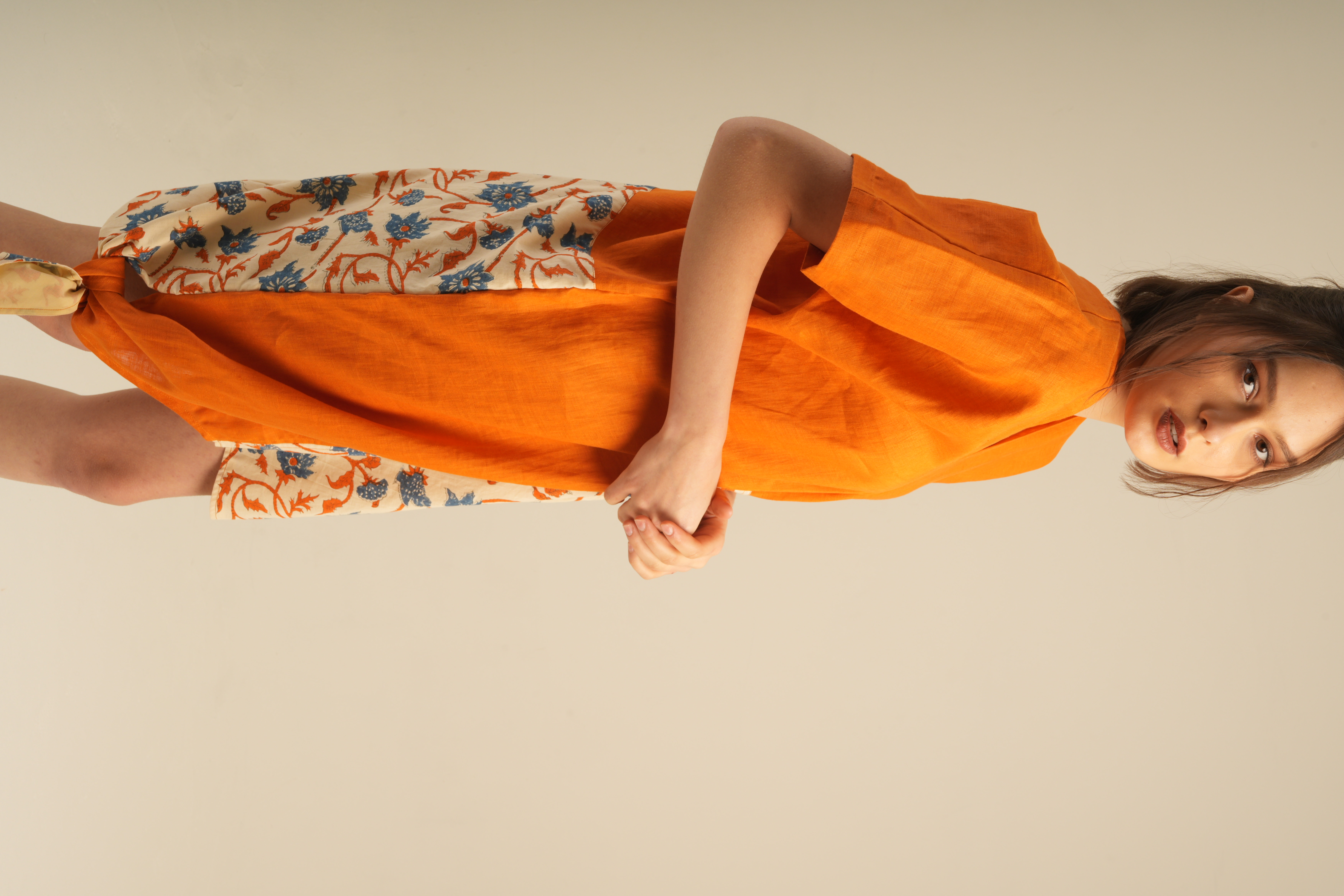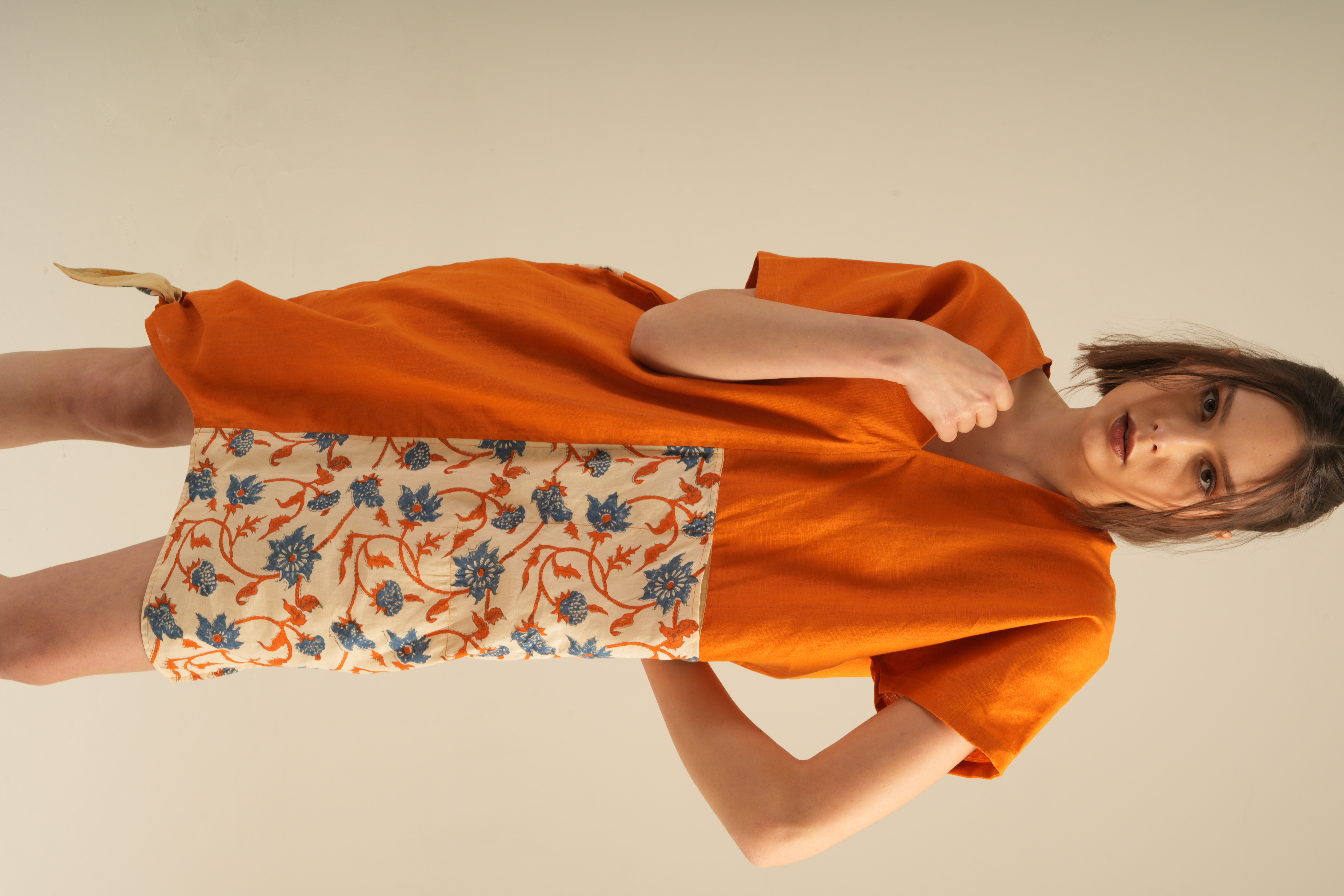 Jai Blouse unique,asymmetrical blouse crafted from 100% high-quality linen and adorned with traditional hand block prints. Designed for comfort with an artistic and elegant touch.