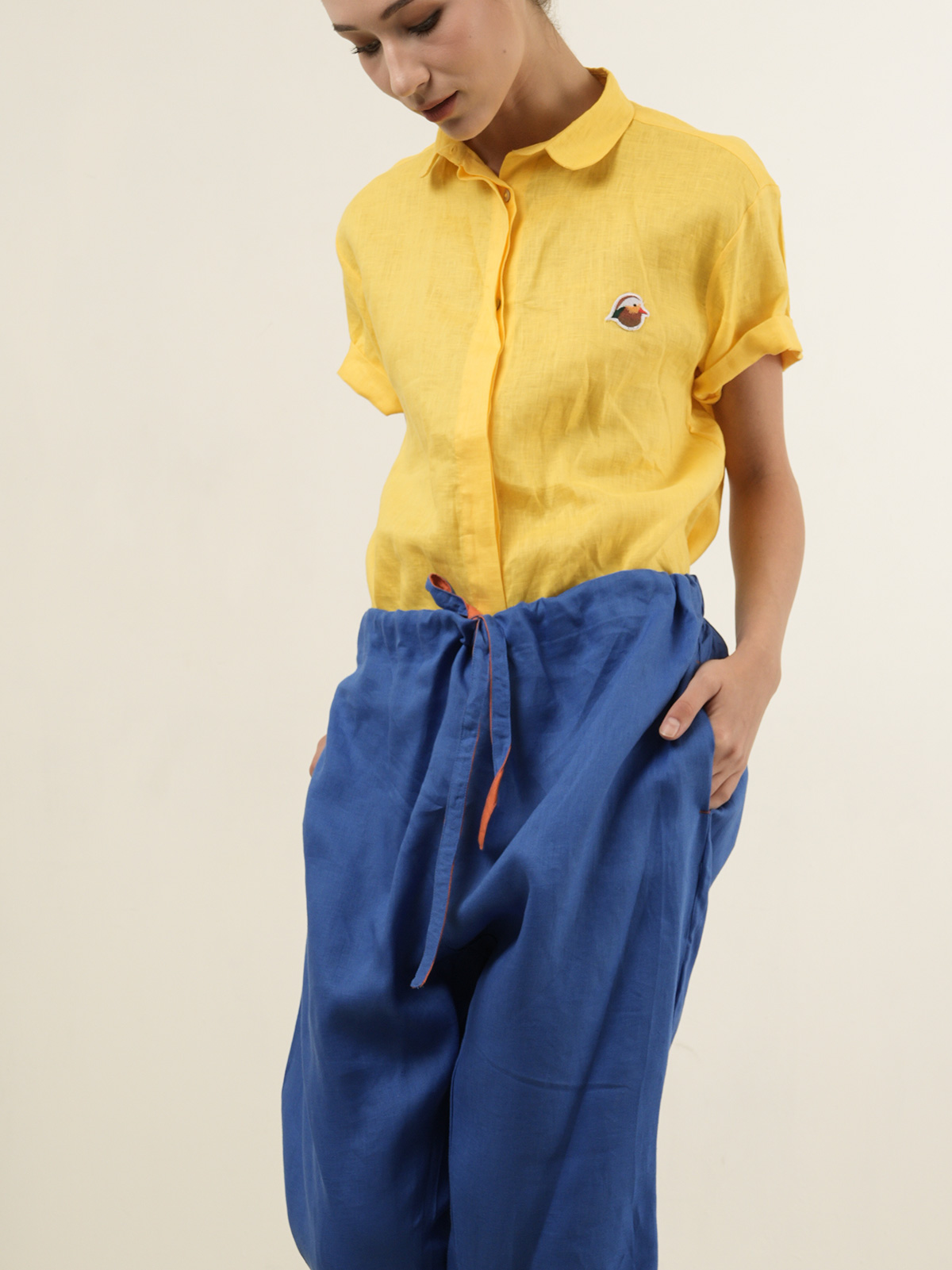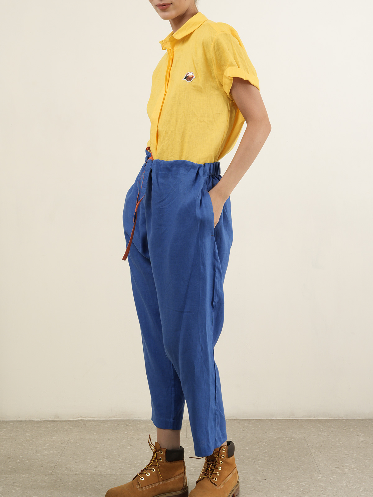 Crop pants,elastic waist with drawstring. Made of 100% Premium Linen