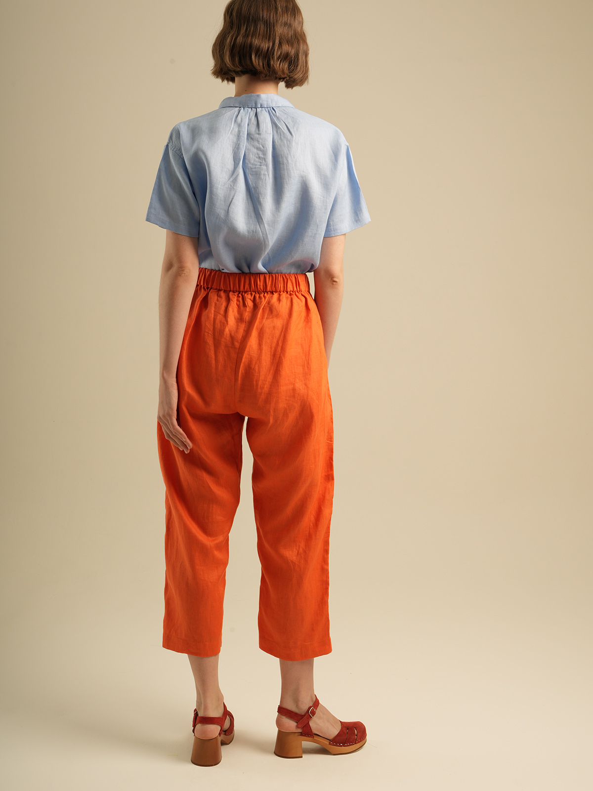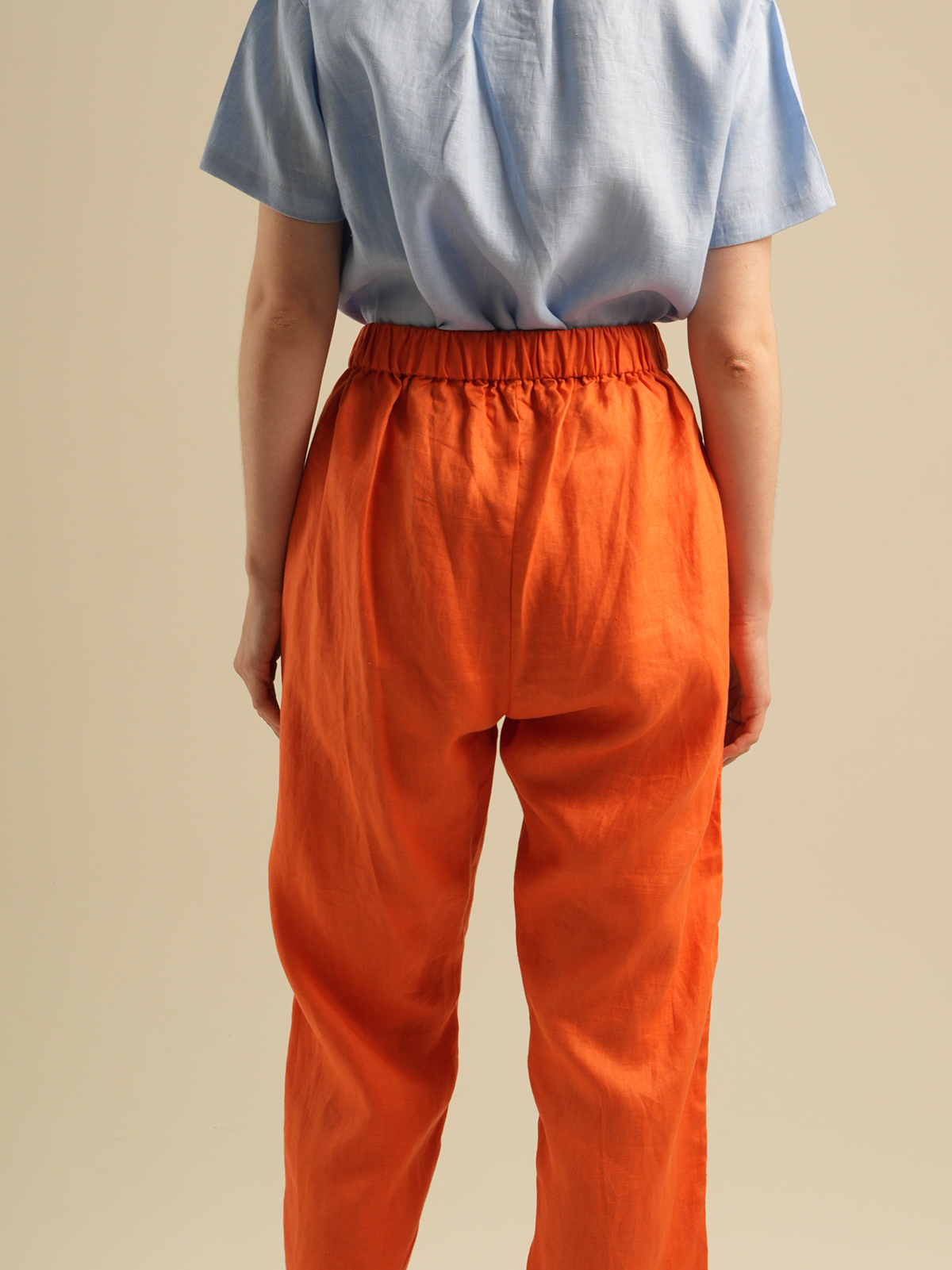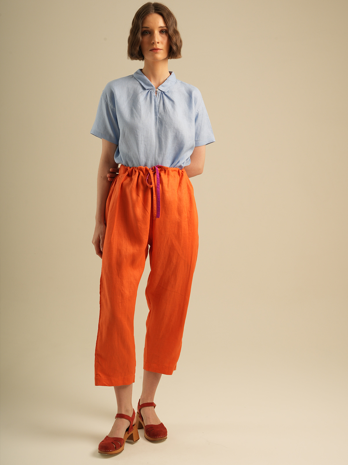 Crop pants,elastic waist with drawstring. Made of 100% Premium Linen