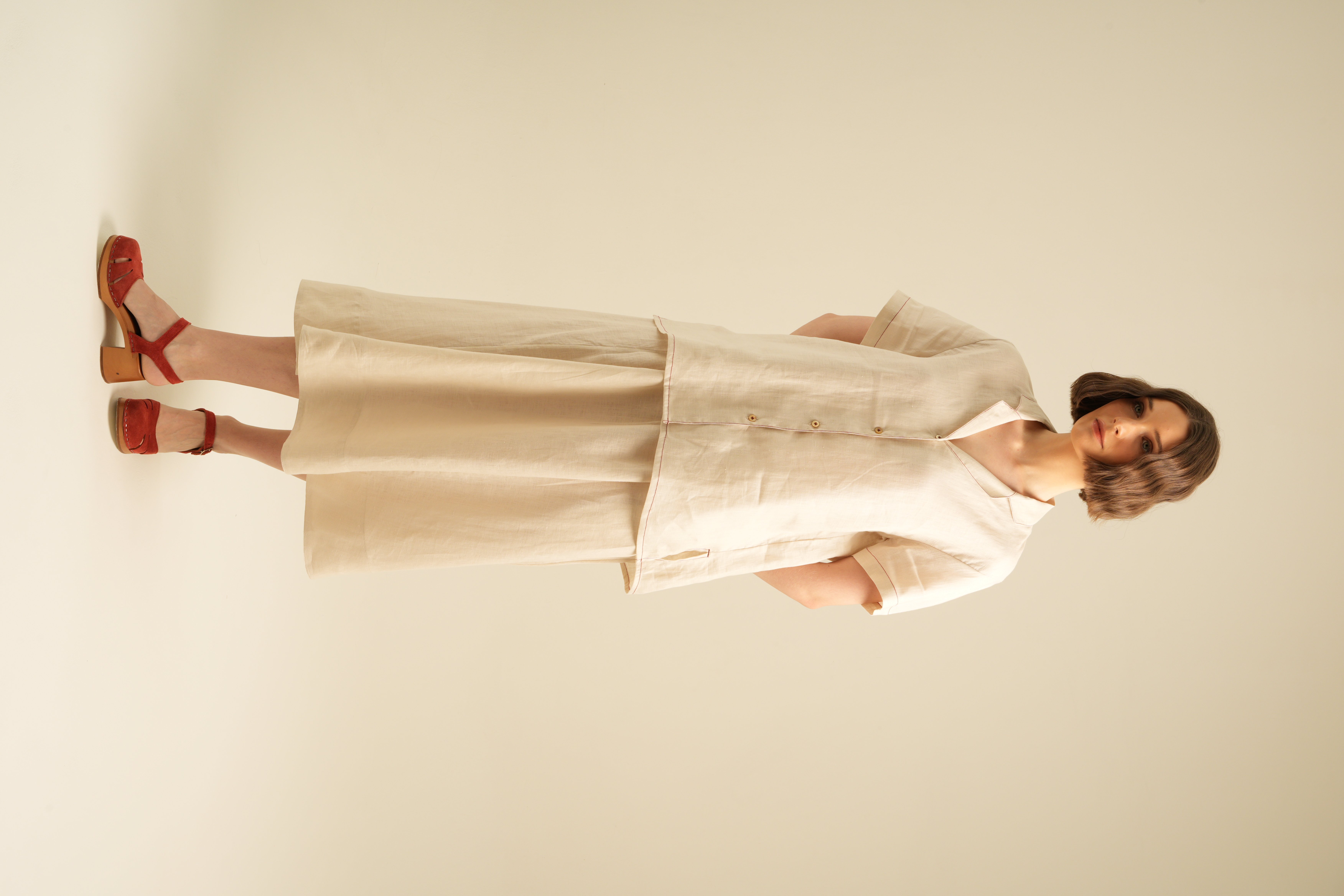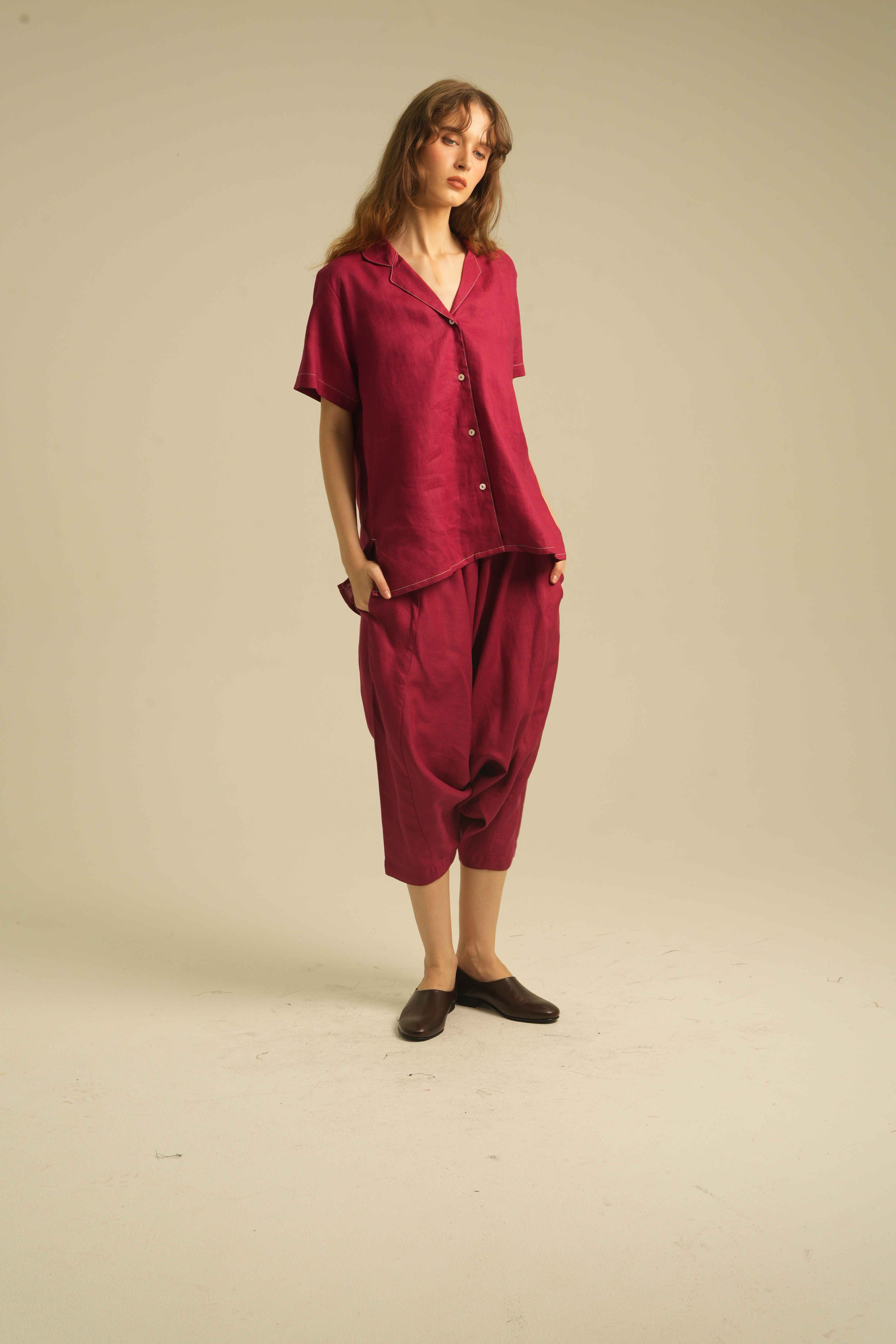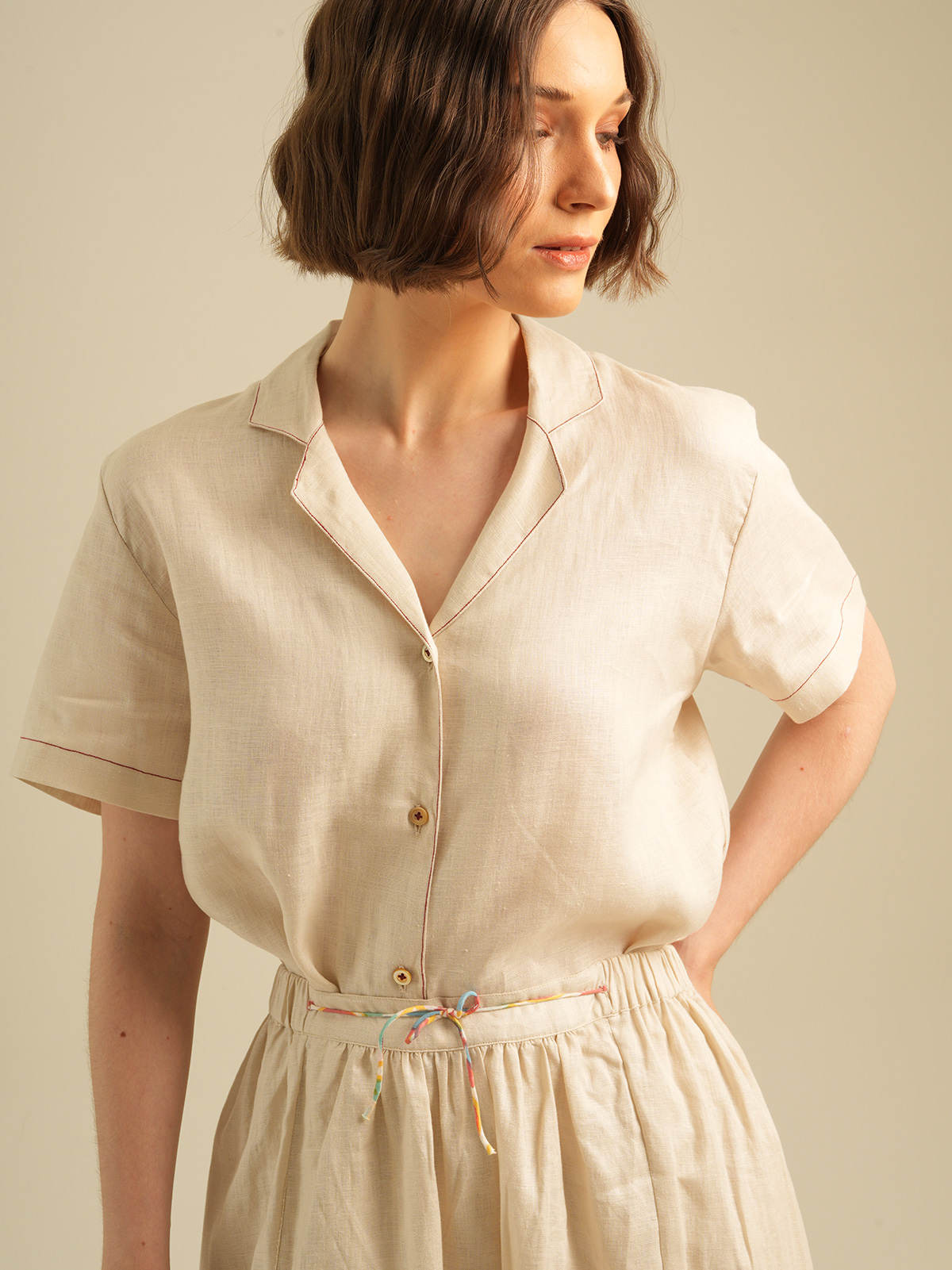 Relaxed Short Sleeves Shirt with Detailed Stitches. Made of 100% Premium Linen
