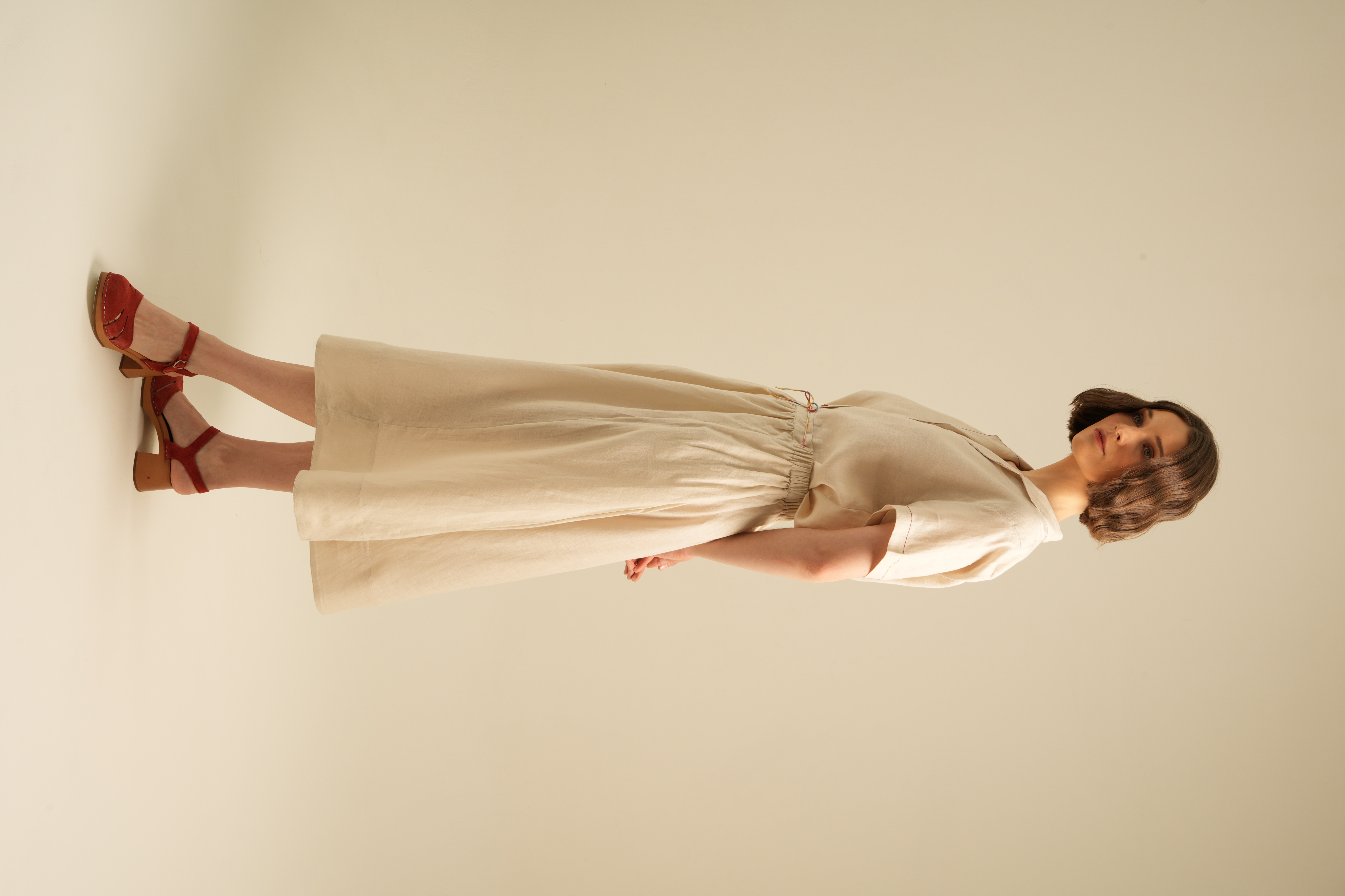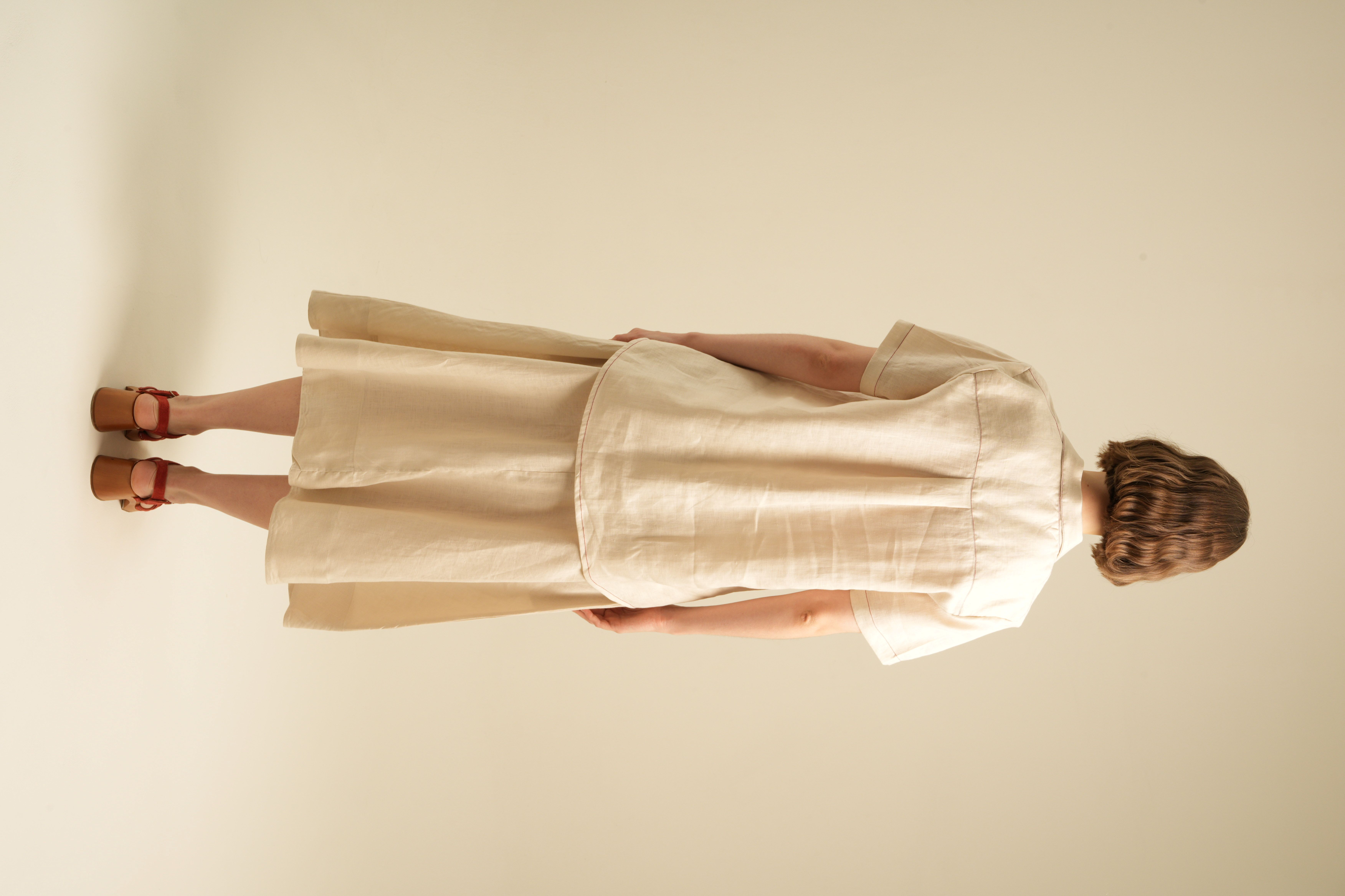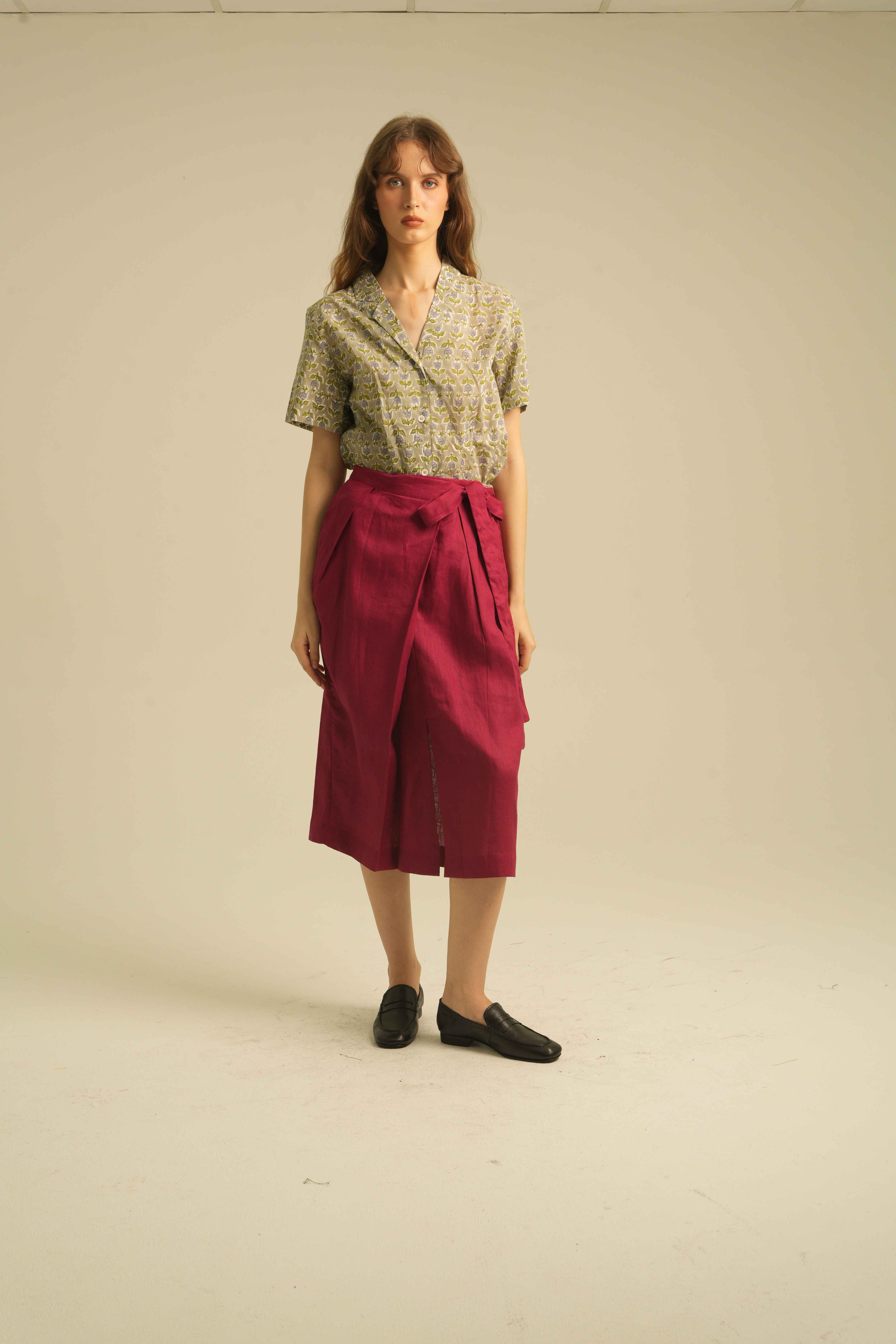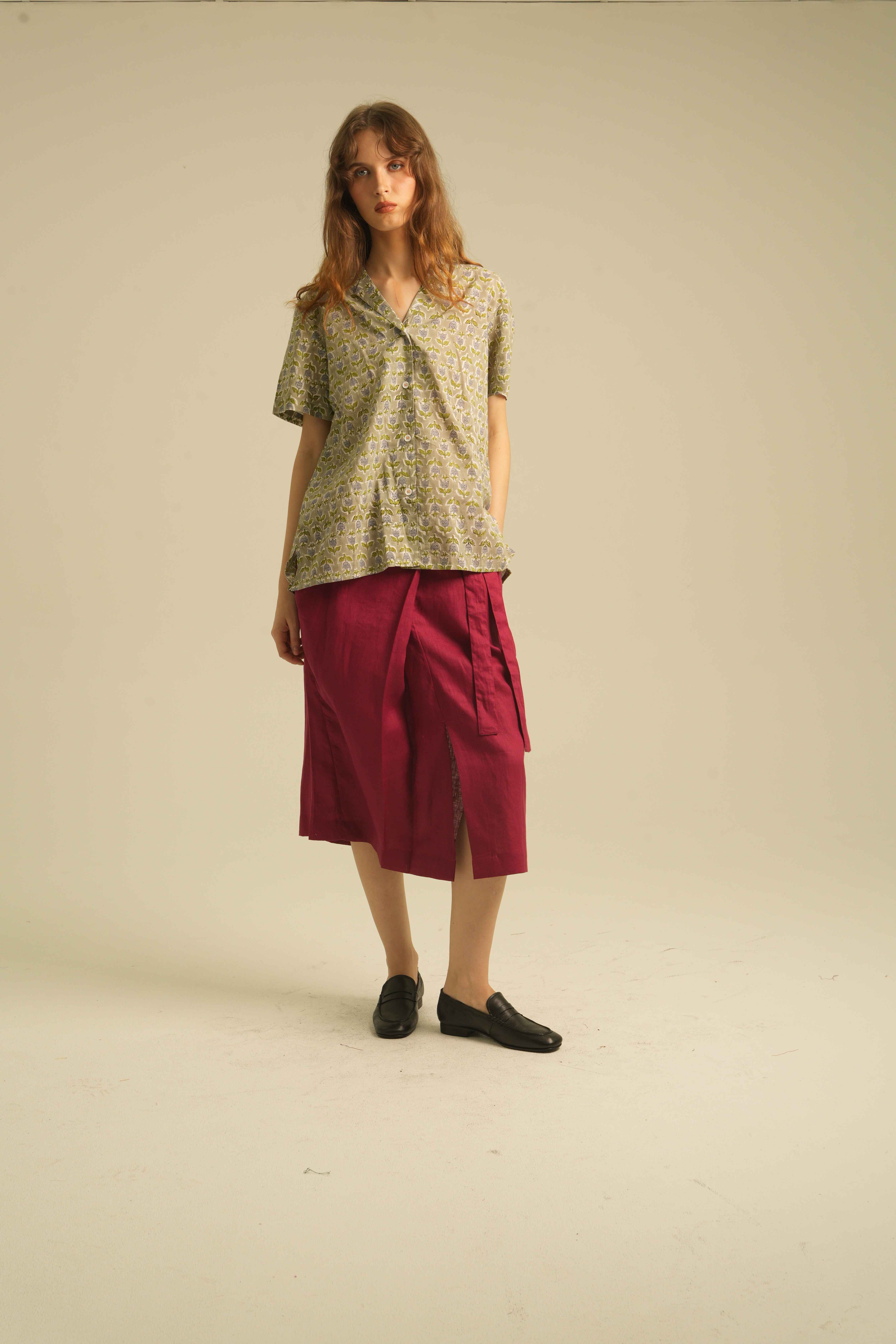 Relaxed Short Sleeves Shirt with Detailed Stitches. Made of 100% Premium Linen