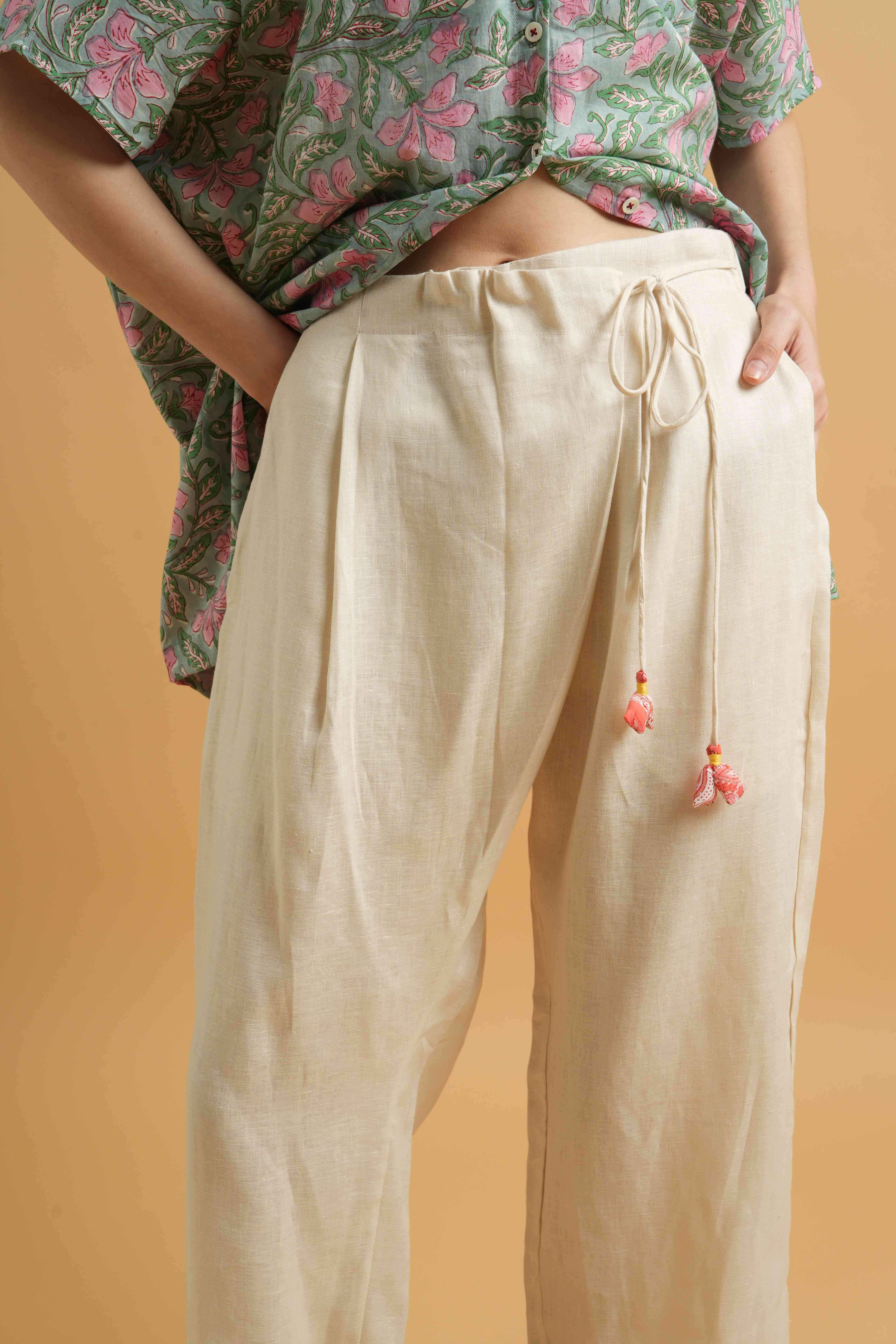 Crafted from 100% premium linen fabric, Orelia Pants offer comfort and breathability for everyday wear. Designed with an elastic waistband and adjustable drawstring for a flexible and secure fit.