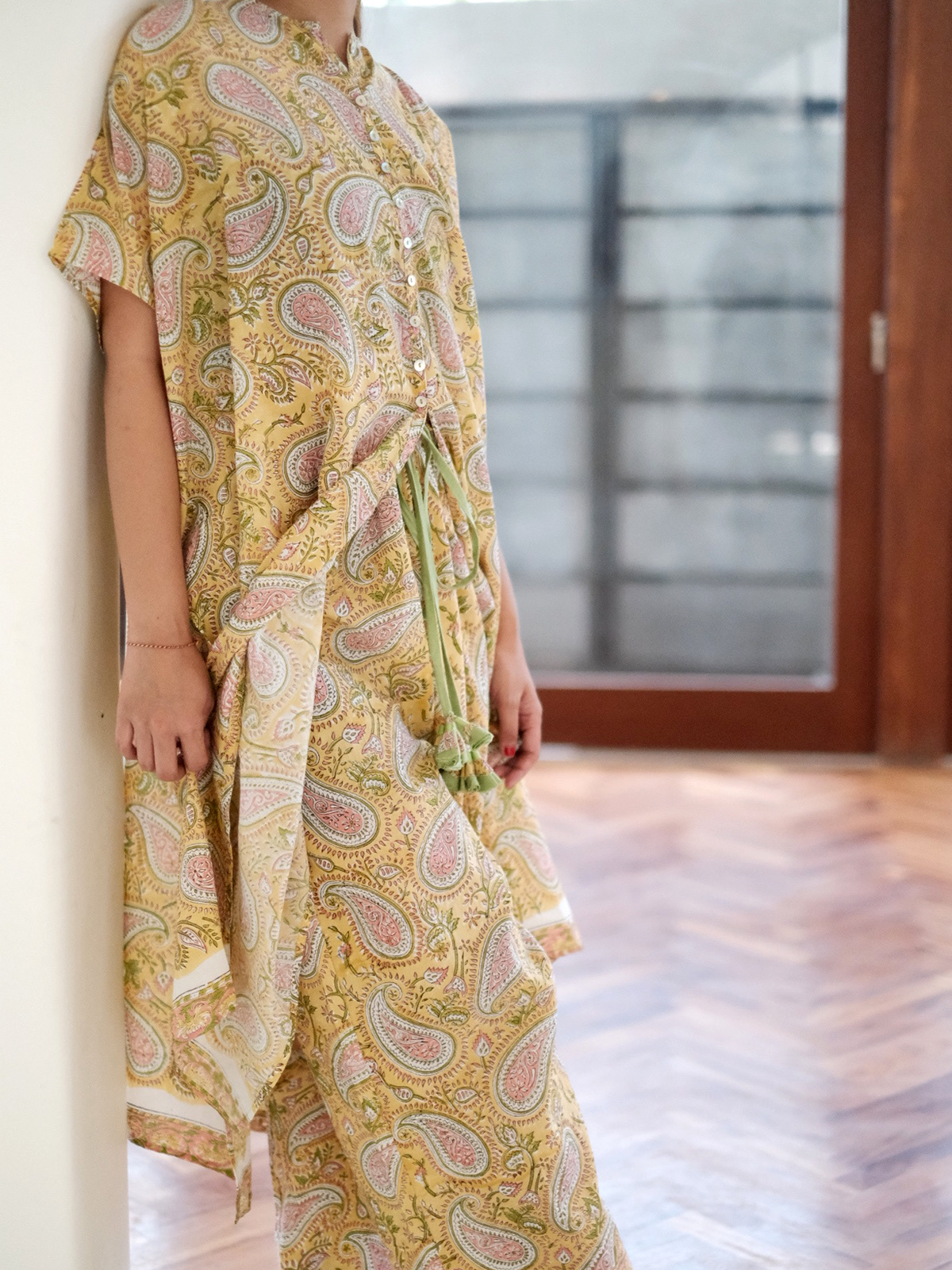 A Hand Block Print Cotton Relaxed Free Size Shirt.
