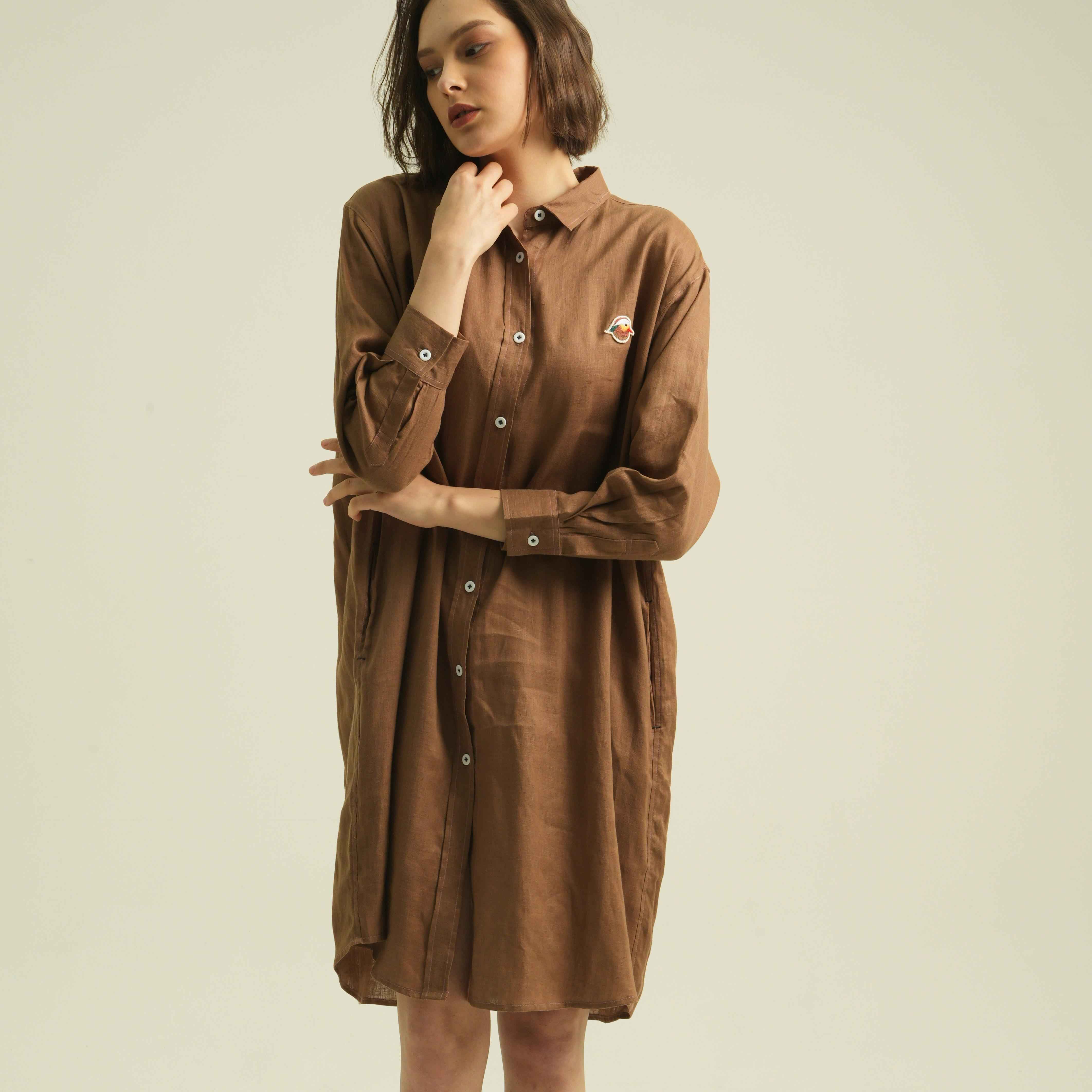 Long Sleeve Dress Mandarin Duck