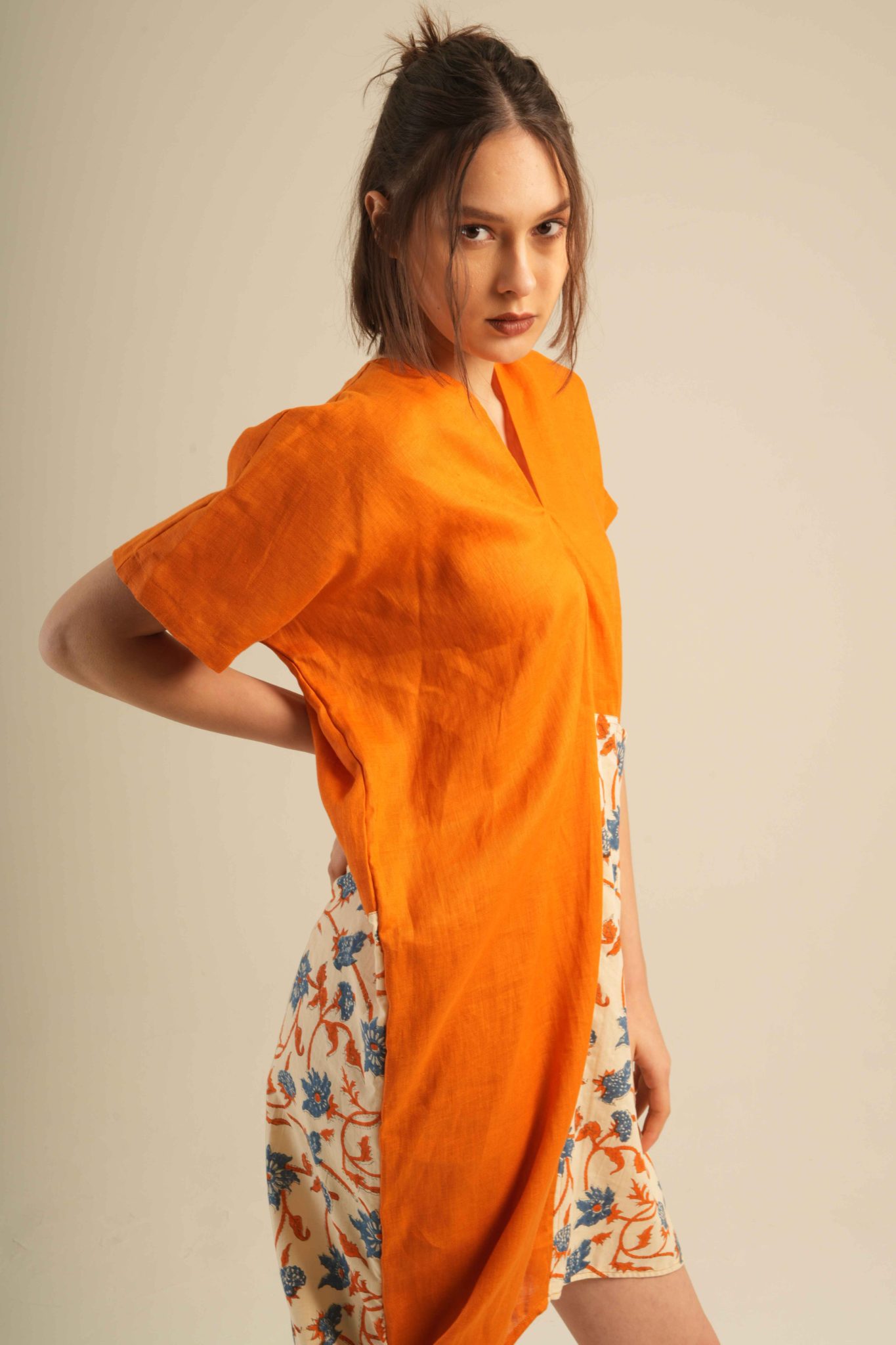 Jai Blouse unique, asymmetrical blouse crafted from 100% high-quality linen and adorned with traditional hand block prints. Designed for comfort with an artistic and elegant touch.